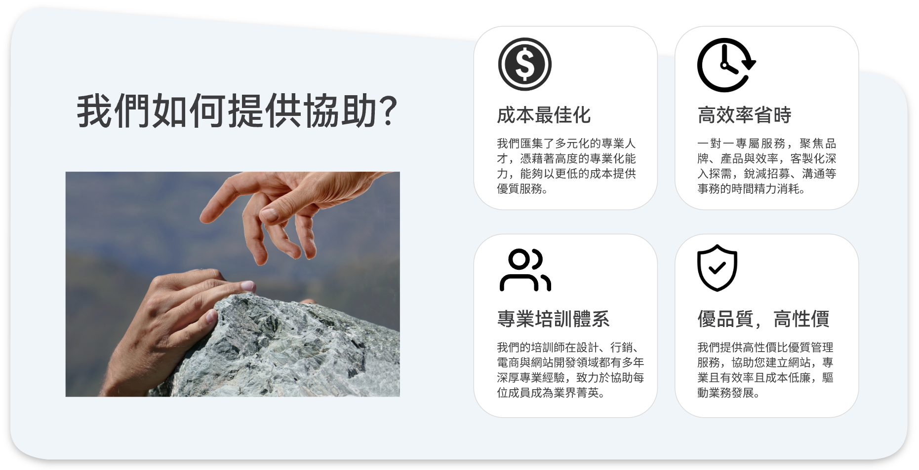 協助您的品牌輕鬆進駐各大跨國電商平台,拓寬線上銷售管道,讓您的產品走向世界,增加全球商業機會。